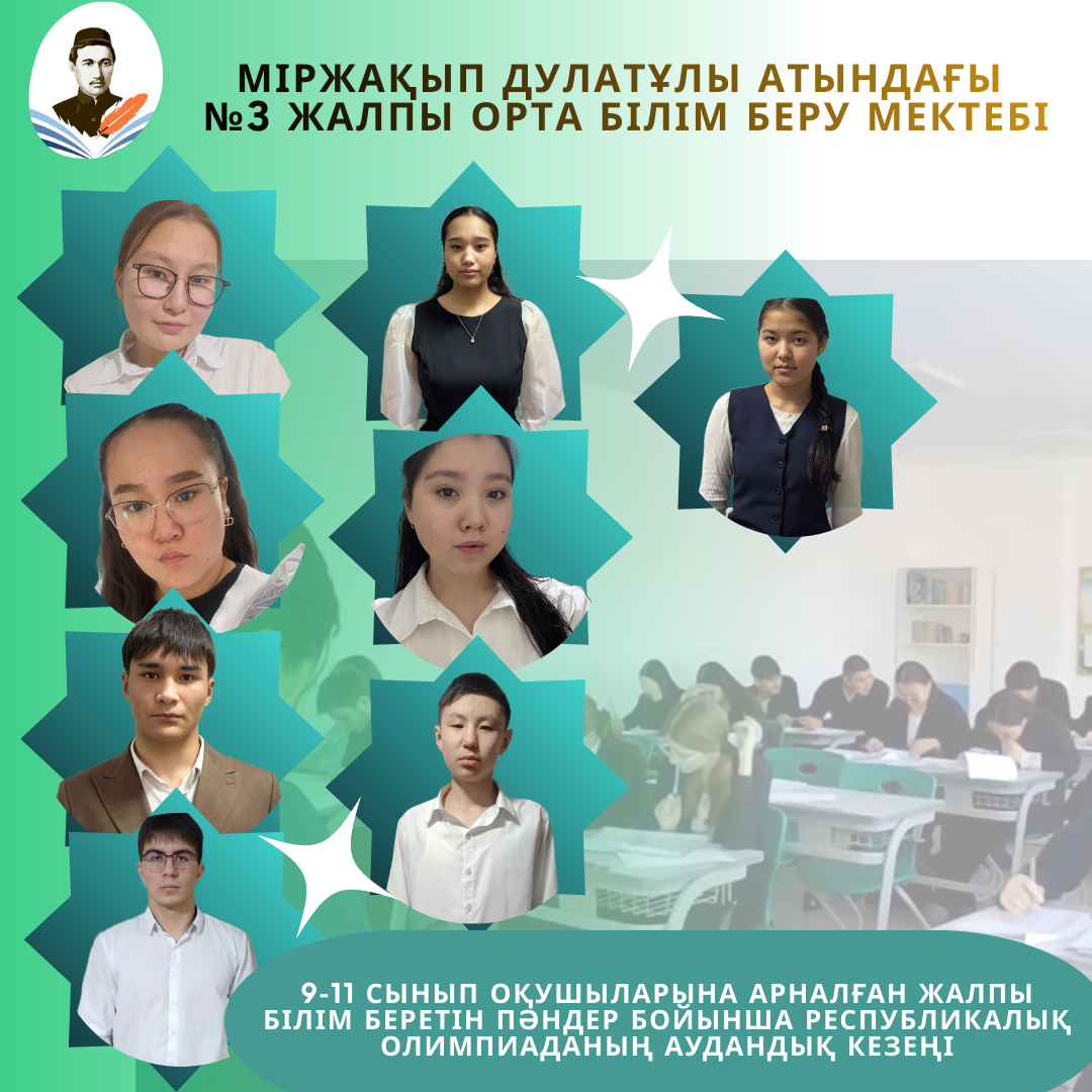 2025 жылдың 17-18 желтоқсан күндері жалпы білім беретін пәндер бойынша республикалық олимпиаданың екінші кезеңін ұйымдастыру және өткізу тәртібіне сәйкес "№2 ЖОББМ" КММ базасында қоғамдық-гуманитарлық бағыт (қазақ тілі мен әдебиет, орыс тілінде оқытатын мектептердегі қазақ тілі, орыс тілі мен әдебиет, қазақ тілінде оқытатын мектептердегі орыс тілі, Қазақстан тарихы, құқық негіздері жіне ағылшын тілі) және жаратылыстану – математикалық бағыт (математика, физика, биология, химия, информатика, география) пәндері бойынша республикалық олимпиадасының аудандық кезеңі өткізілді. Тапсырмаларды бағалау критерийлеріне сәйкес қорытындылар шығарылып аудандық кезеңнің жеңімпаздары мен жүлдегерлері анықталды,олар М. Дулатұлы атындағы №3 ЖОББМ-нің оқушылары: